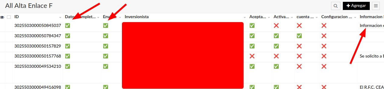Se marcarán con ✅ las casillas Datos completos y Enviado.