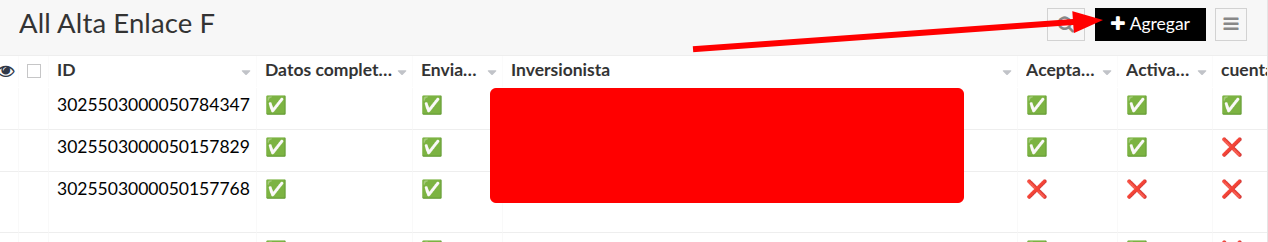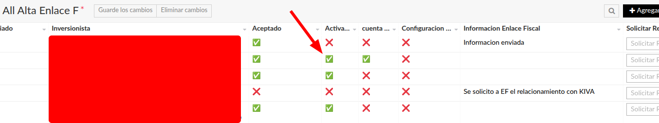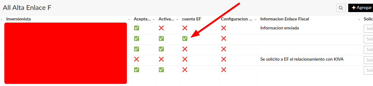 Una vez que el usuario crea su cuenta en EF, se marca con ✅ la casilla Cuenta EF